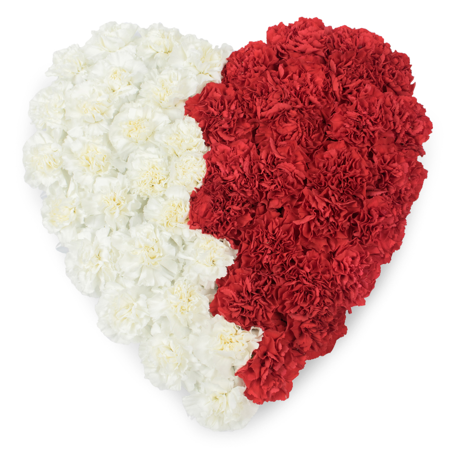 Express your heartfelt emotions with our timeless heart-shaped bouquet of white and red carnations. Each carnation is hand-picked to ensure exceptional freshness and quality.