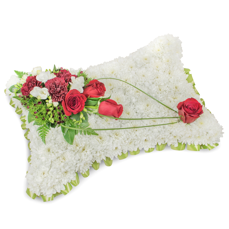 Convey your deepest condolences with our timeless floral arrangement, crafted to blend beauty with heartfelt emotion. Featuring a sophisticated mix of white chrysanthemums, red roses, white freesias, and dark red carnations, enhanced with delicate dianthus and bear grass, this bouquet is a symbol of enduring respect and care. Every flower is exquisitely hand-selected for its freshness and vibrancy, arranged to create a luxurious display of nature’s beauty.